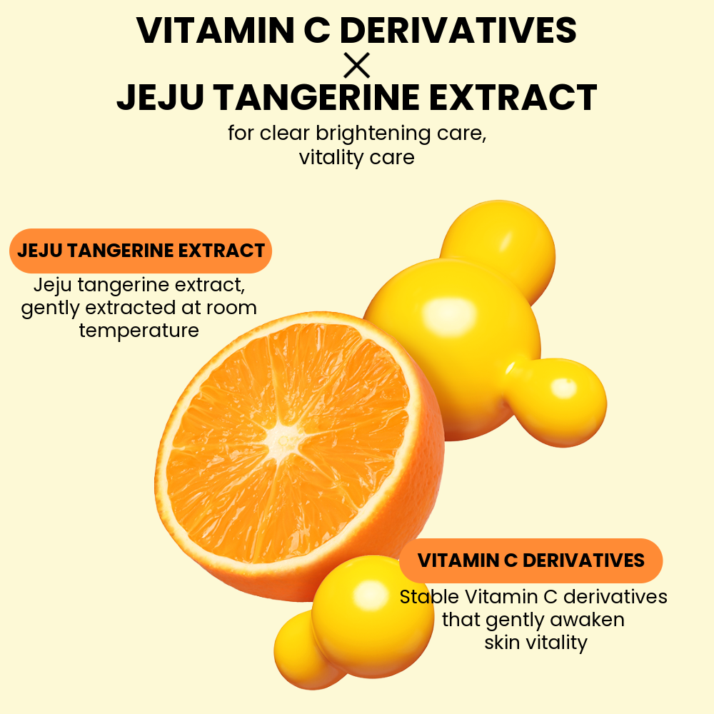 At the heart of the range is Jeju Tangerine Extract, sourced from Korea’s pristine Jeju Island, known for delivering natural vitality and glow to tired-looking skin. This is paired with a 5% Vita Complex, combining vitamin C derivatives with niacinamide and panthenol to help improve the appearance of uneven tone and visible dark spots.